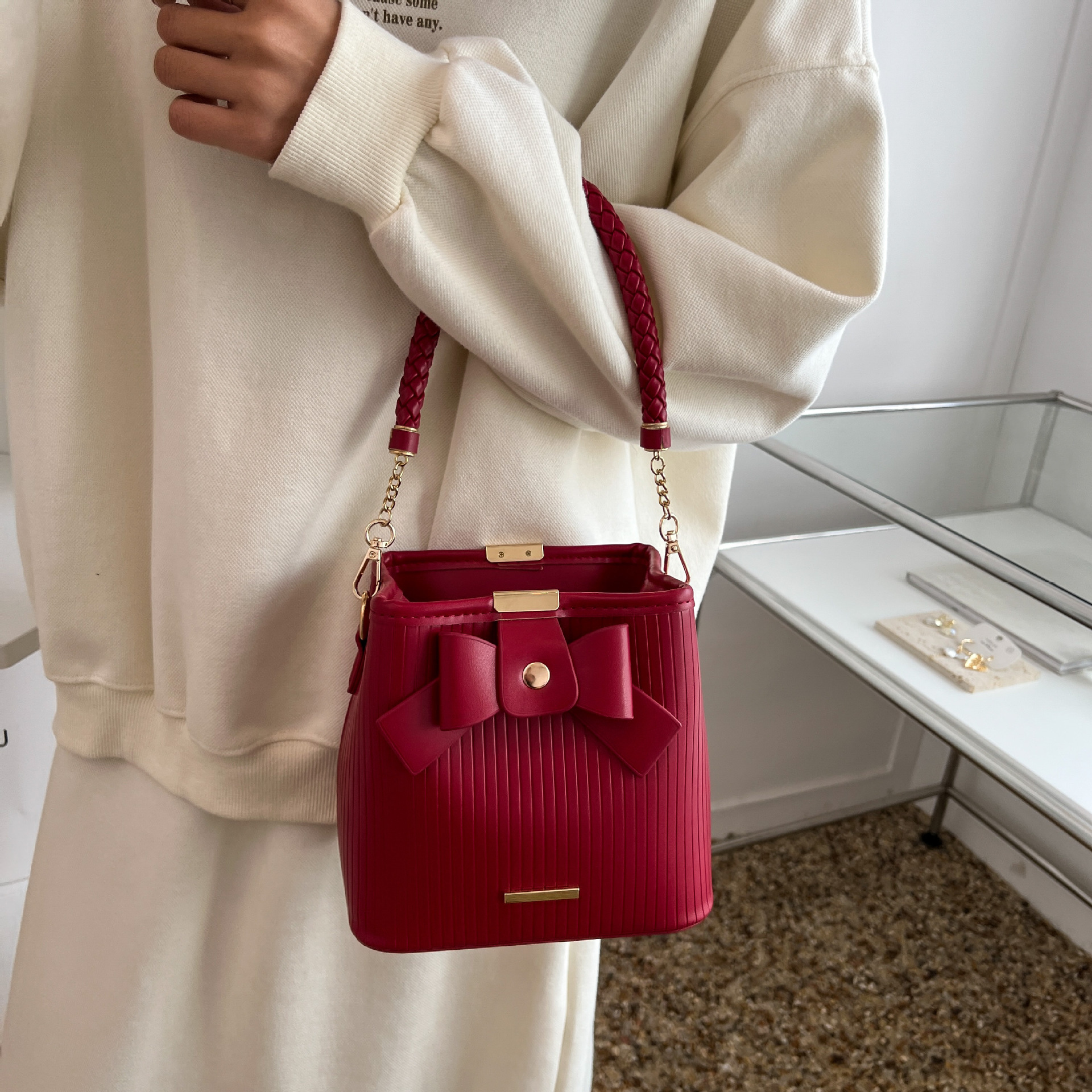 Color: red, beige